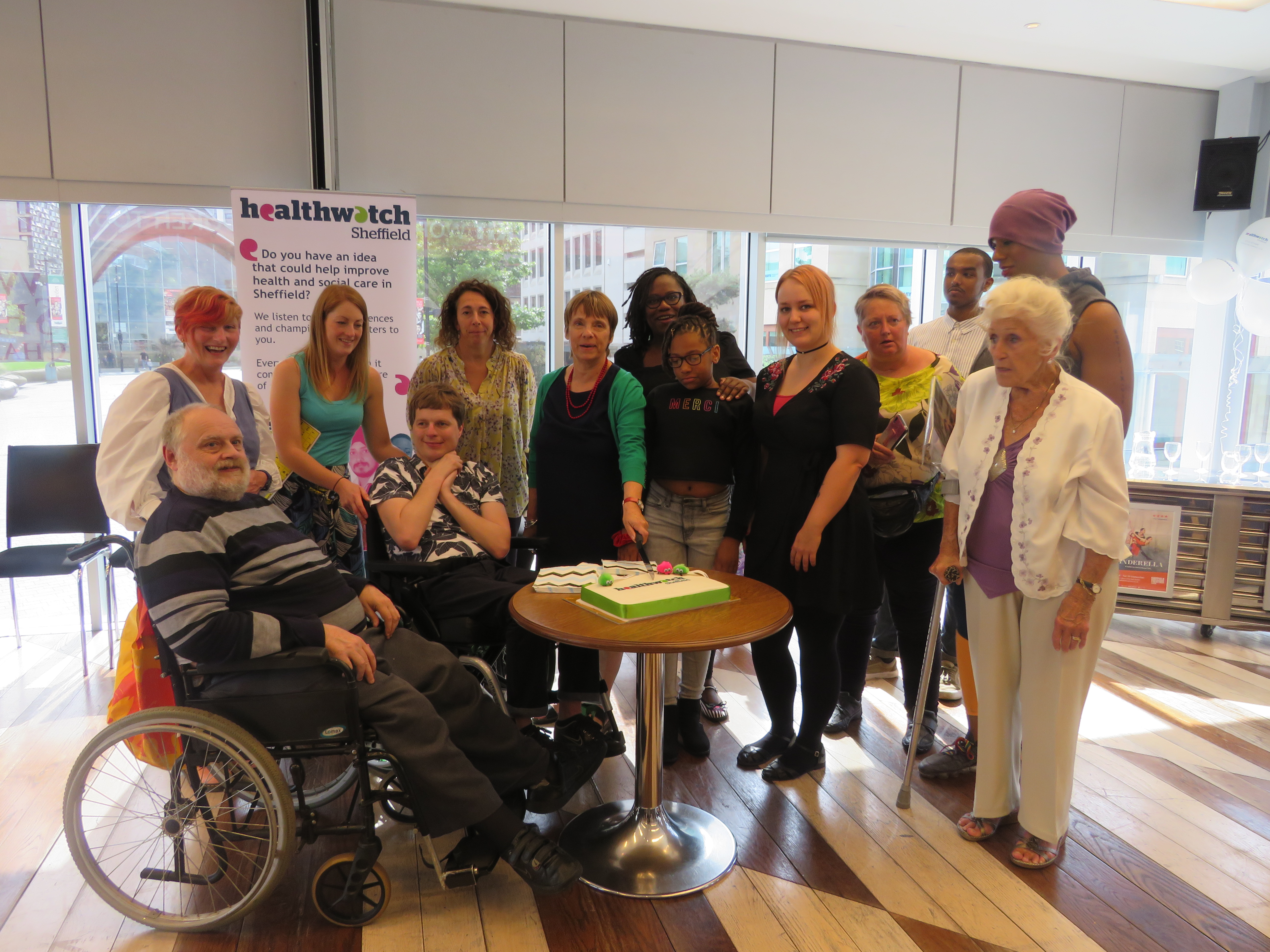 This was such a lovely opportunity to say thank you for the work that so many people undertake on behalf of Healthwatch Sheffield. Our chair, Judy Robinson, spoke about the exhibition and about our achievements over the last year whilst everyone enjoyed a glass of wine or elderflower fizz and some cake.